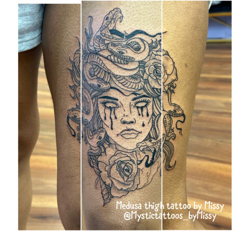 Tattoo Artist and owner of Mystic Tattoo, Missy Ray, has loved art her entire life. She began drawing as a young teen and found a natural talent for re-creating with paper and pencil anything she looked at. She spent many years perfecting her craft and that fluently led into other creative avenues in her life.